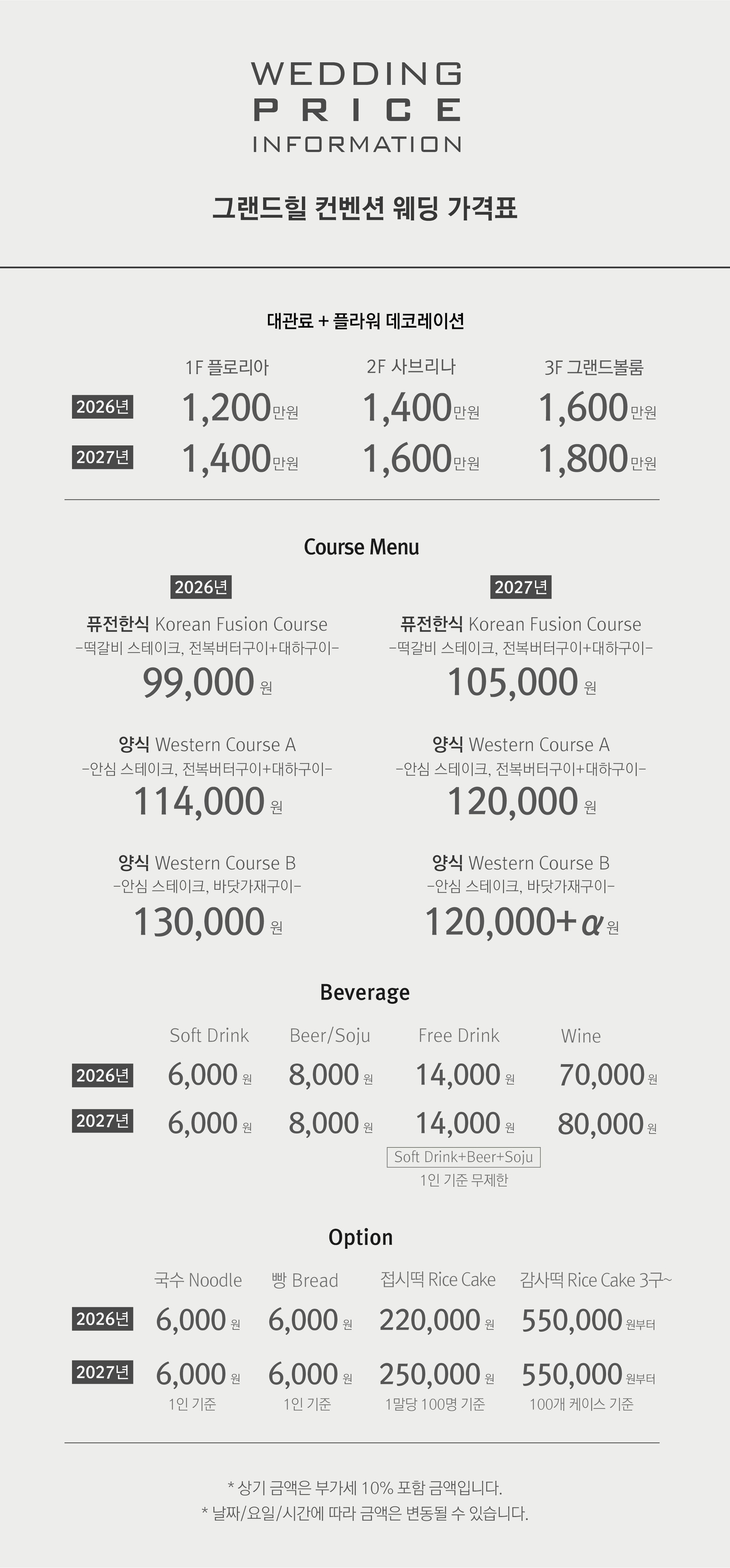 그랜드힐의 웨딩 가격정보를 알려드립니다.